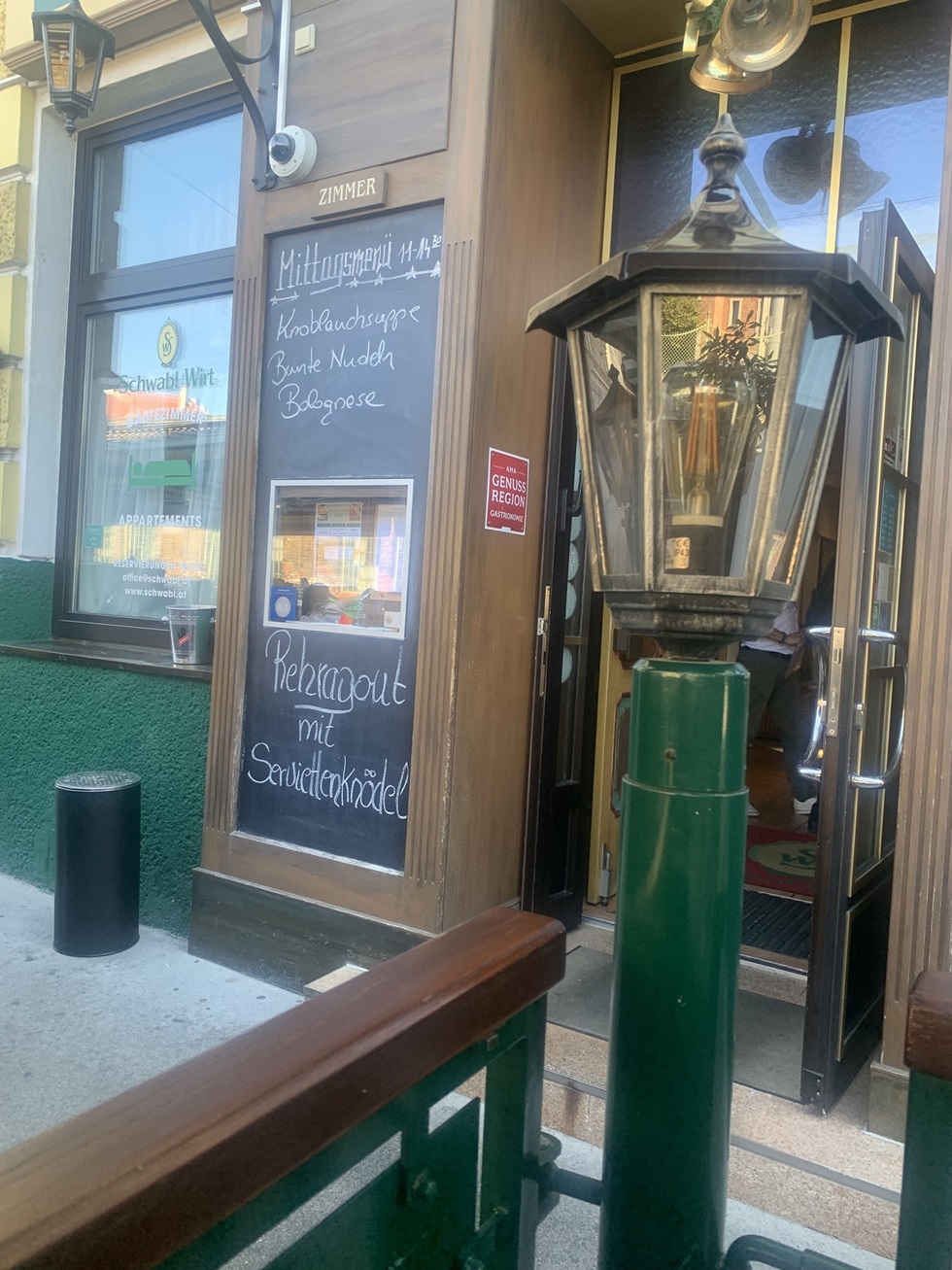 Auf der hompage http://www.schwabl.at findet man das tägliche Menü zu einem wohlfeilen Preis. Weiters die Speisekarte und die Kontaktdaten.